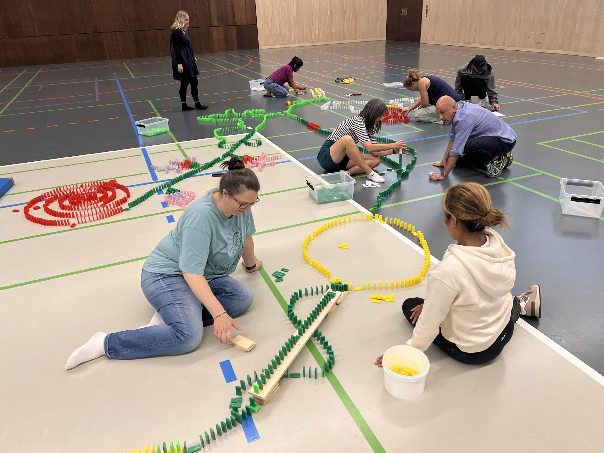 Der DominoDay kann überall in Seminarräumen, Turnhallen, je nach Wetter auch im Aussenbereich durchgeführt werden. Dazu benötigen wir lediglich 1 Tisch pro Team den Rest bringen wir für Sie.