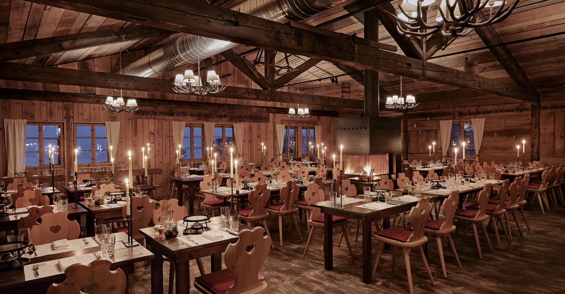 Mitten in der Natur mit Aussicht über Zürich im Winter mit rustikalem Chalet