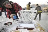 Eisblöcke, Schnitzwerkzeug, Handschuhe, Instruktor/en