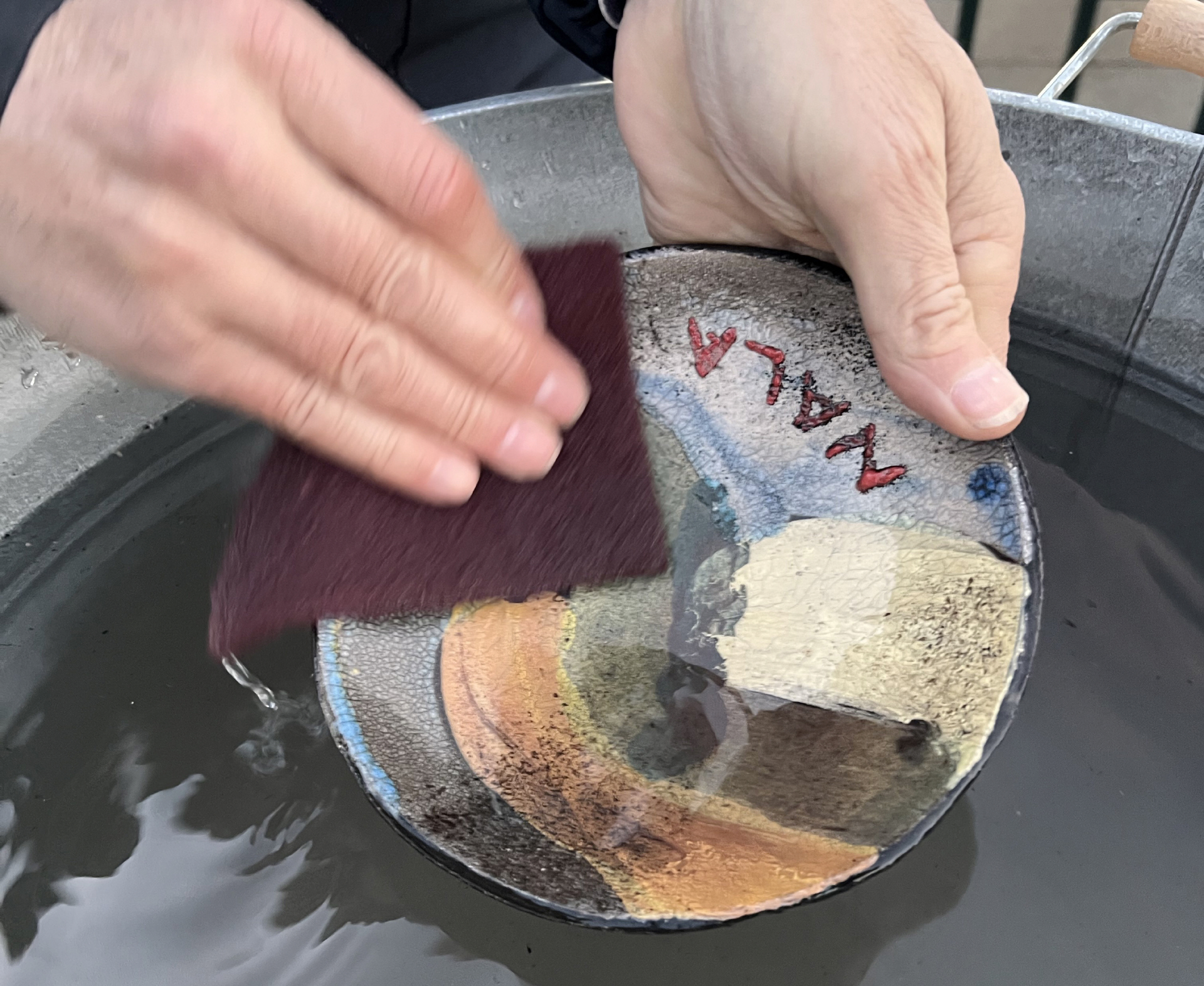 Rotglühend werden die Schalen aus dem Ofen zuerst in Sägemehl gelegt und abgedeckt, so entstehen die für Raku typischen Risse in der Glasur. Anschliessend waschen die Gäste Ihre Schalen in Wasser was die Farben wieder zum Leuchten bringt. Jede Schale ist ein einzigartiges und überraschendes Unikat, bei dem man vorab nicht so genau weiss wie das Ergebnis sein wird.